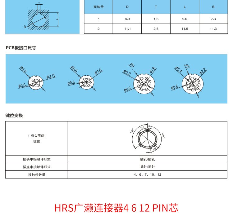 二、插座有焊线型插座、焊接PCB板插座,插头有标准插头,浮动对接型插座(可以与插头对接起到延长线线缆的作用)