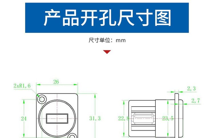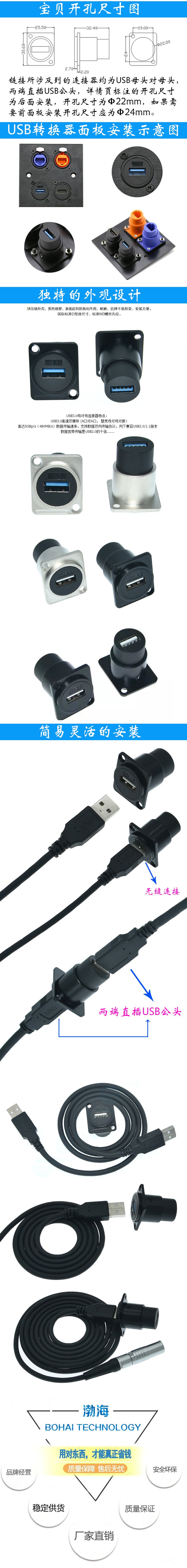 二、D型USB穿通插座设计,D型金属法兰,改DATA接口系列是一种加固并方便安装的连接器,便于系统化设计,可兼容任意标准USB3.0/2.0插头