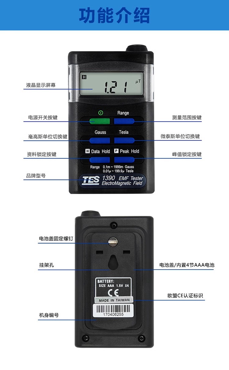 泰仕TES1390/1392电磁波测试仪电磁波辐射仪家用电器辐射测量仪 是否支持加工定制 | 否 | ||