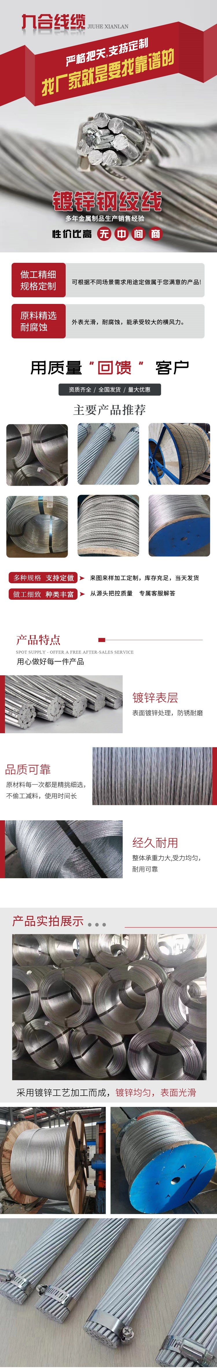 镀锌钢绞线抗拉强度高弯曲半径小电力工程用材钢丝绳九合线缆制造