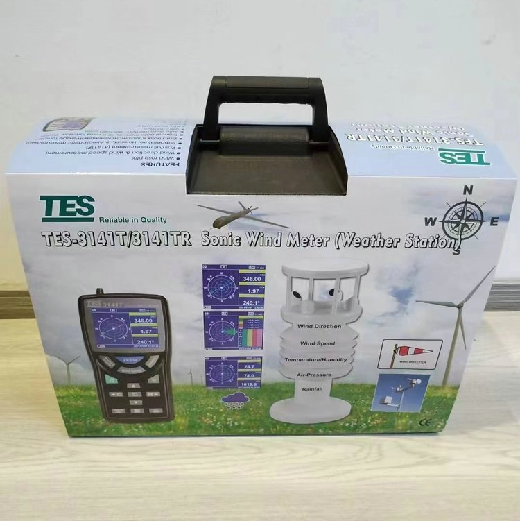 泰仕TES-3141T手持式气象站风向风速大气压力湿度温度风速风向仪