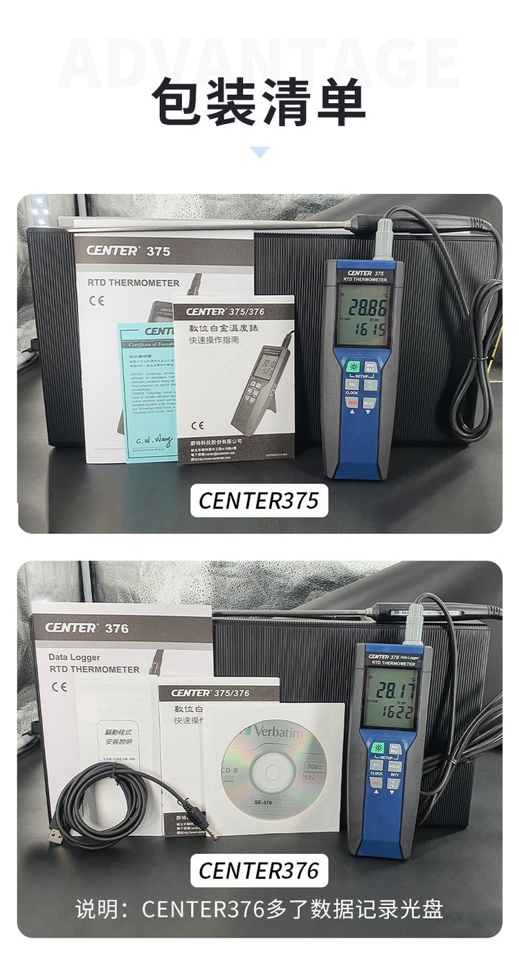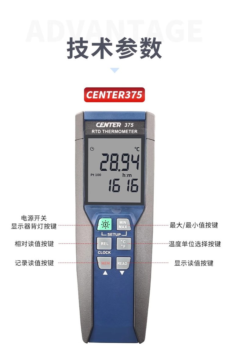 台湾群特CENTER-375/CENTER-376铂金白金电阻温度表高精度测温仪 品牌 | 台湾群特CENTER | ||