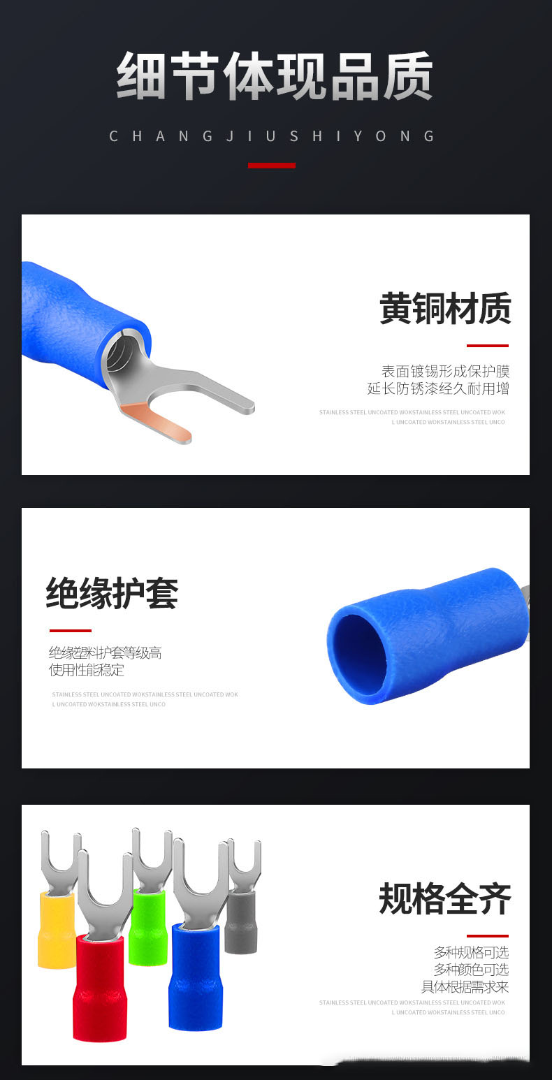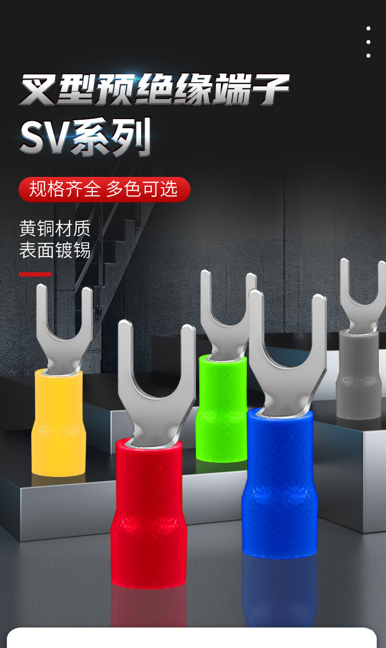 SV冷压接线端子黄铜U型叉形预绝缘线耳铜鼻子五色可选 1000只/包 型号 | SV1.25-4叉形绝缘端子 | ||