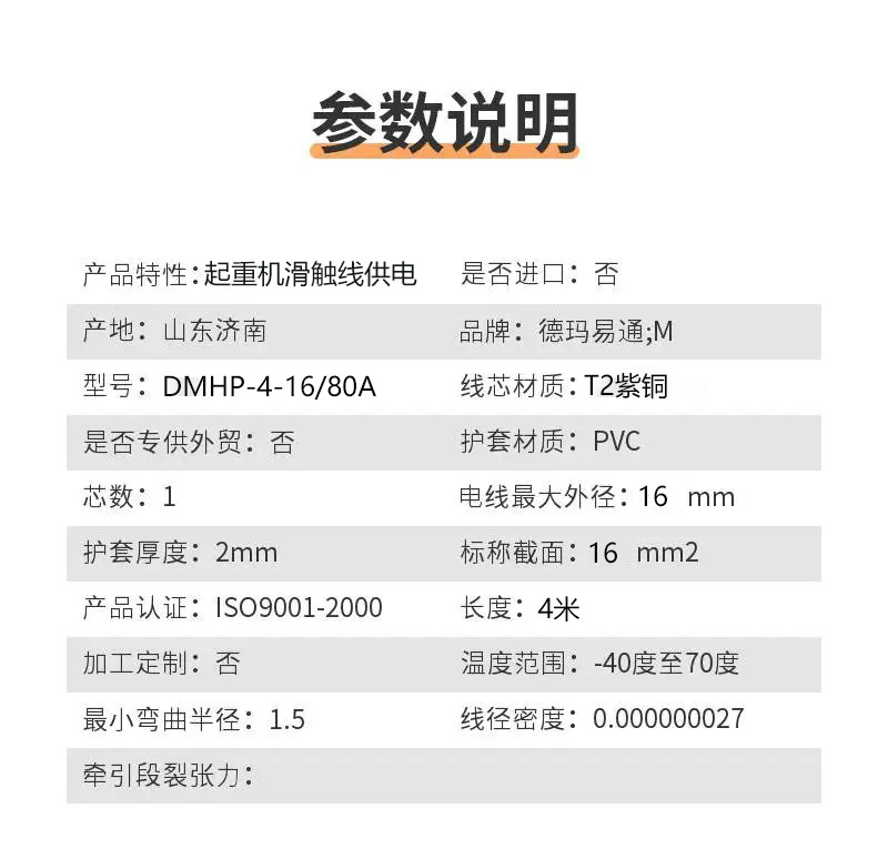 多极管式滑触线 DHG型 电动葫芦 堆垛机供电 DMHP-4-16/80A 额定电流 | 80A | ||