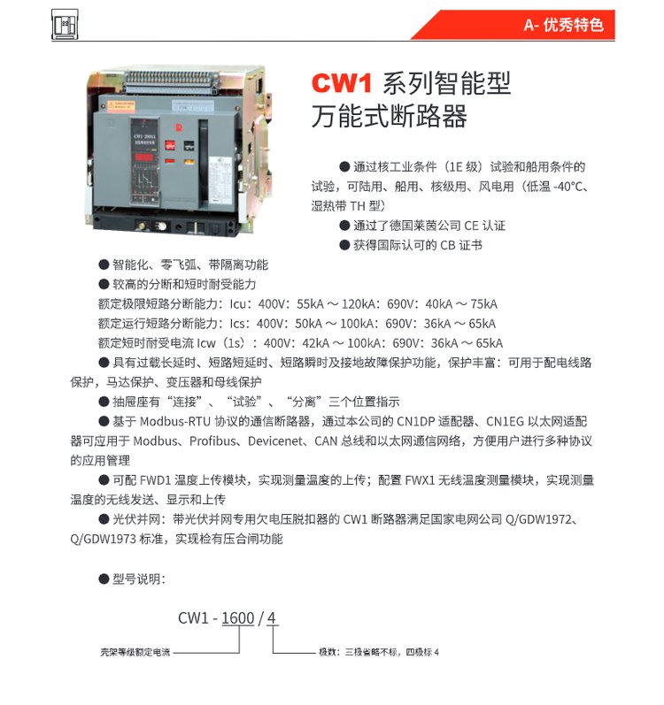 开关智能型框架万能断路器 CW1-2000/3P4P/3200/4000/5000 品牌 | 常熟 | ||