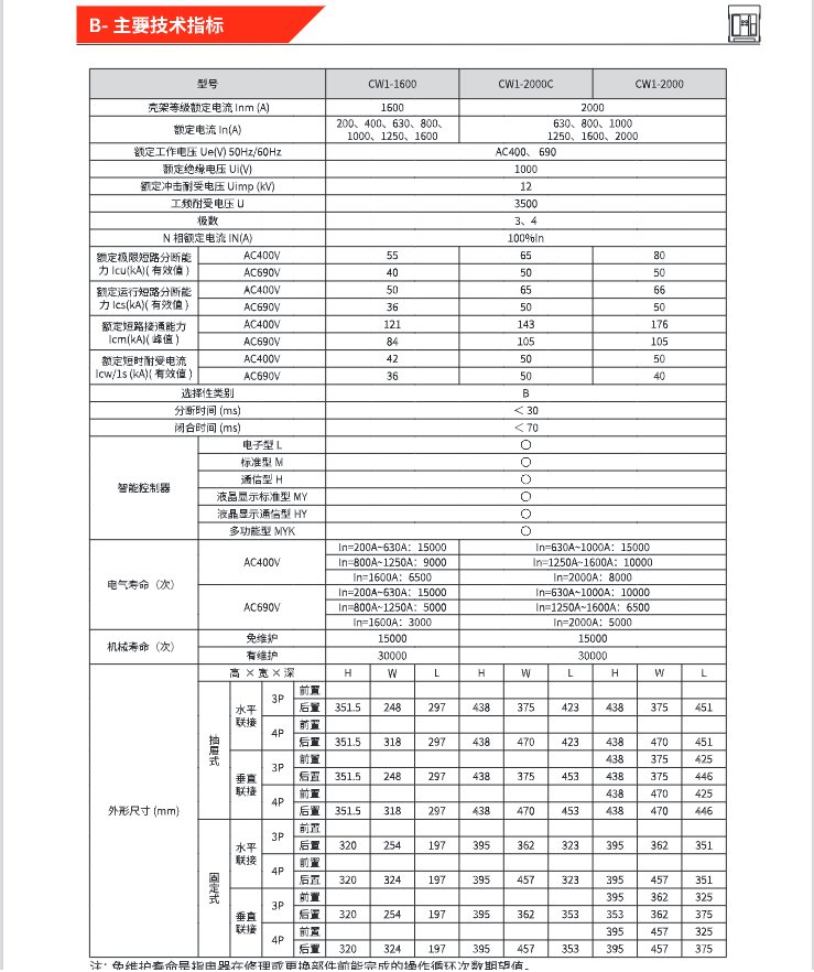 额定电流 | 2000A、2500A、2900A、3200A | ||