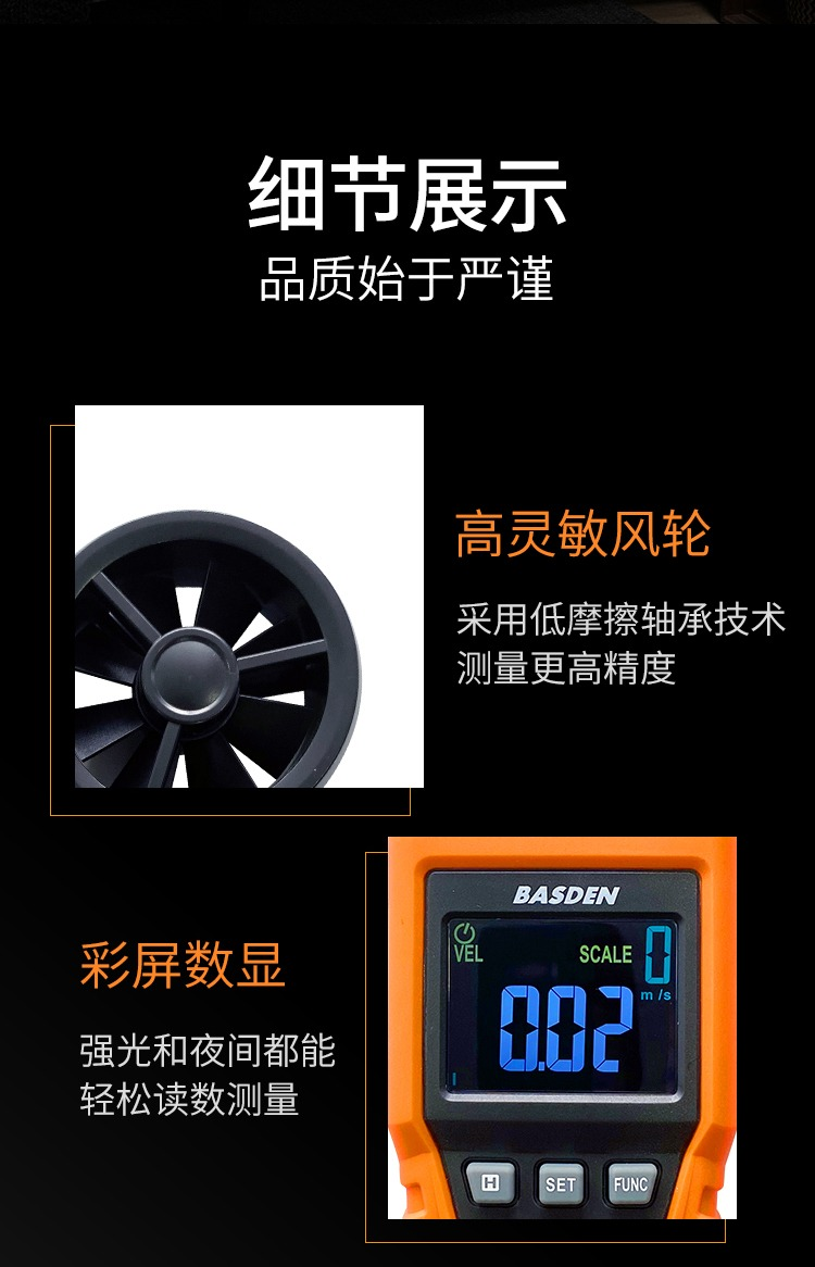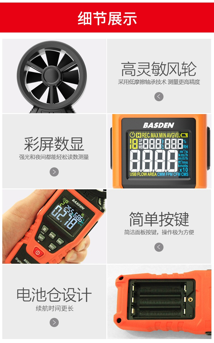 BSD-340A/340B叶轮式风速风温风量仪贝斯顿BASDEN手持式气象仪 是否支持加工定制 | 否 | ||
