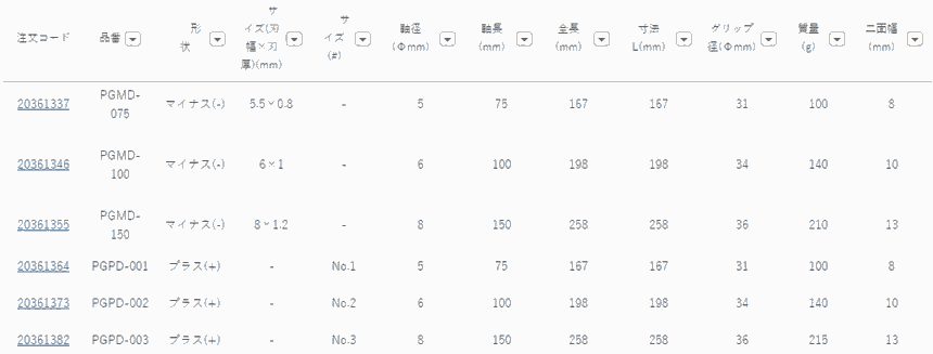 種類グリップドライバー 材質(グリップ)樹脂 刃先マグネットあり 軸貫通あり 内容量1個