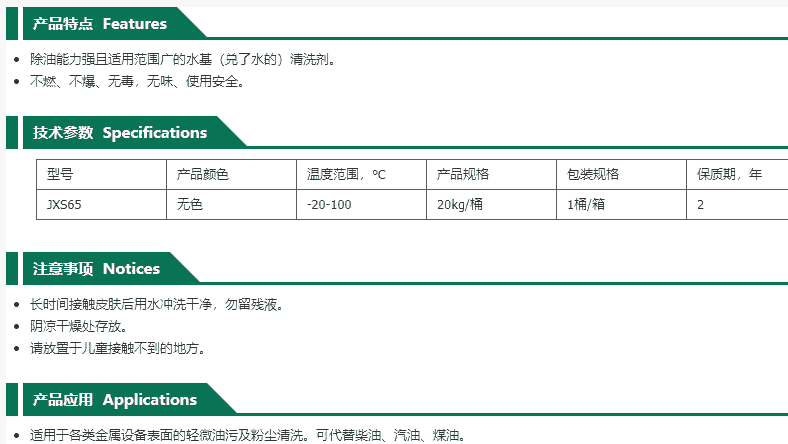 江西欣盛金属零件清洗剂JXS65 20kg桶