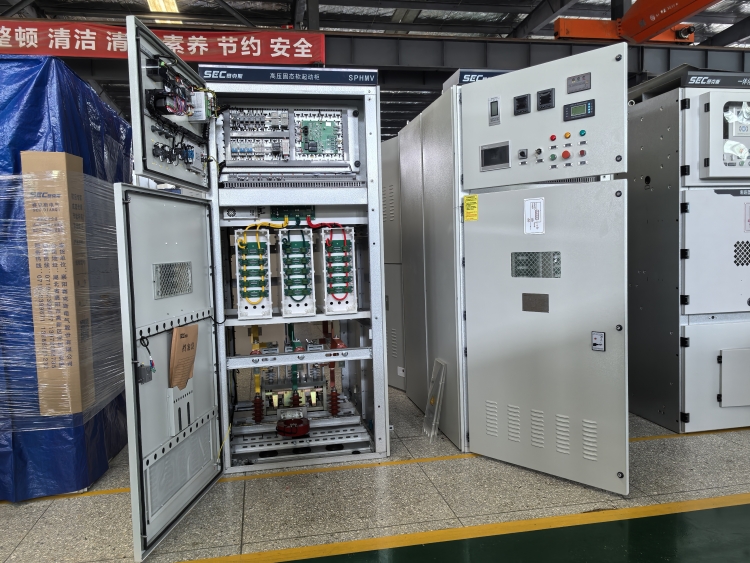 SPHMV高压固态软启动柜是一种高压电机起动及保护设备,该装置采用多个可控硅串并连而成,可满足不同的电流及电压要求。其广泛应用于额定电压 3000—15000V 的水利泵站、建材、化工、冶金钢铁、造纸、环保等行业。能很好地与冰机、水泵、风机、压缩机、粉碎机、搅拌机、磨浆机、皮带机等各种机电设备配套使用。