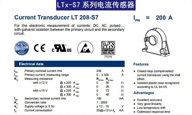 LEM电流传感器LT208-S7/SP1交直流测量LT208-S7原装进口