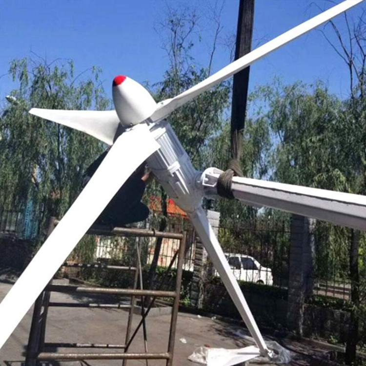1、风力发电机主机及风叶:主要发电核心,通过风叶旋转带动风力发电机转子旋转切割磁力线,从而把旋转动能转化成电能。
