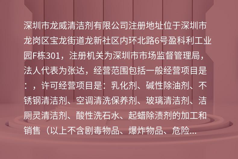 商铺名称:深圳市龙威清洁剂有限公司