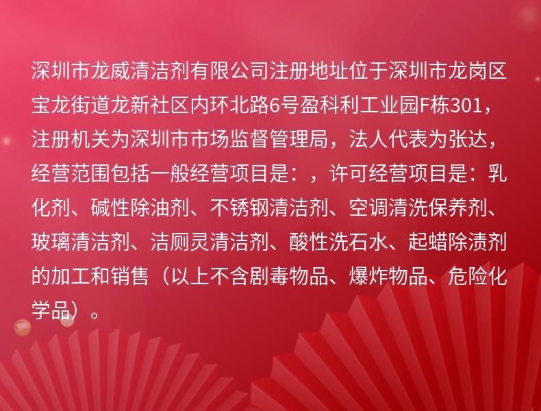 商铺名称:深圳市龙威清洁剂有限公司