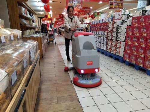 百色大型超市每天人来人往,特别是雨季来临,超市内很多脏乱的脚印,影响超市购物环境。使用百色电动拖地机,操作简单轻松效率高,洗地拖干一步搞定,清洁过的超市地面不仅干净透亮,而且还能瞬间干燥,避免被反复踩脏,降低因地面湿滑而埋下的安全隐患。