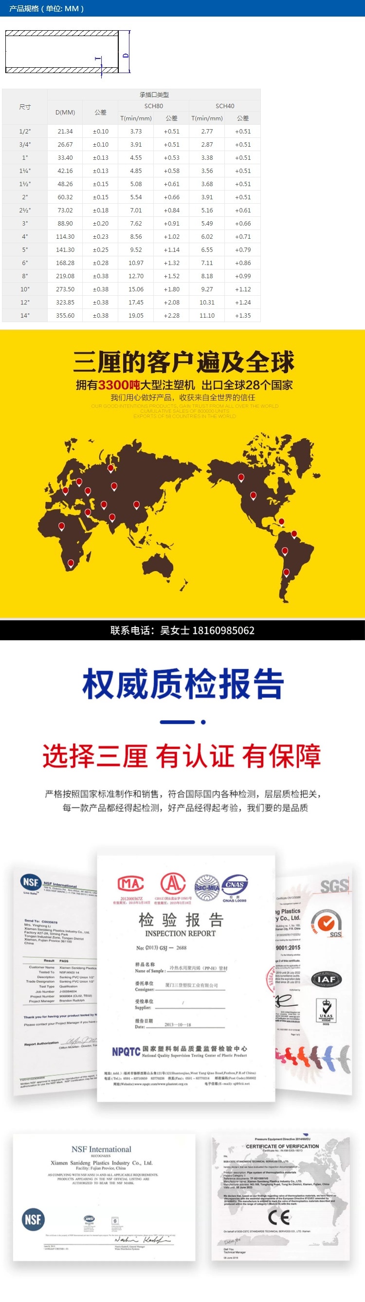 颜色 | UPVC(深灰色),CPVC(浅灰色),PPH(米黄色),PVDF(象牙色) | ||