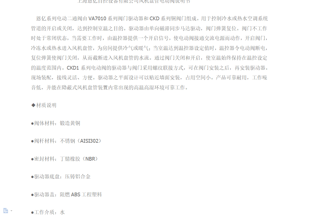 江森款V7010风机盘管空调专用两线开关型电动阀