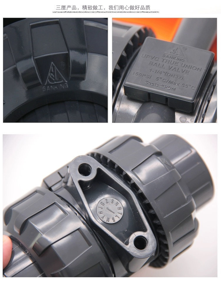 三厘SANKINGPVC双由令球阀双活接活式快接阀门工业级化工级耐腐蚀