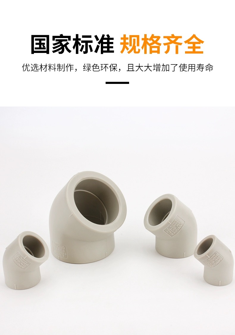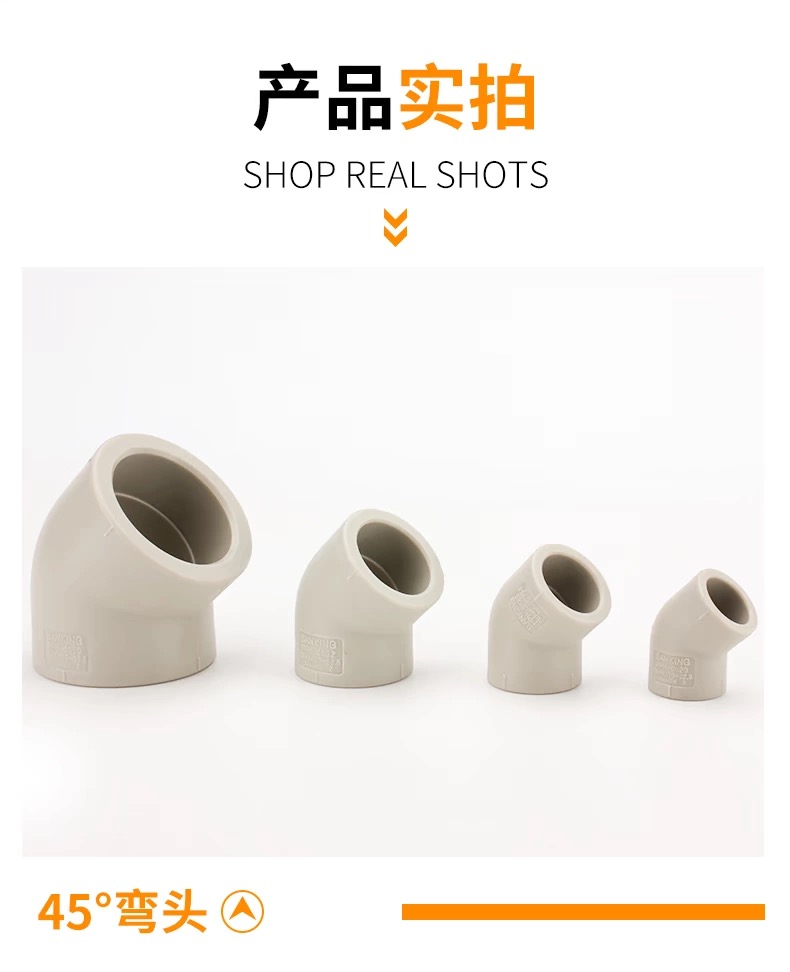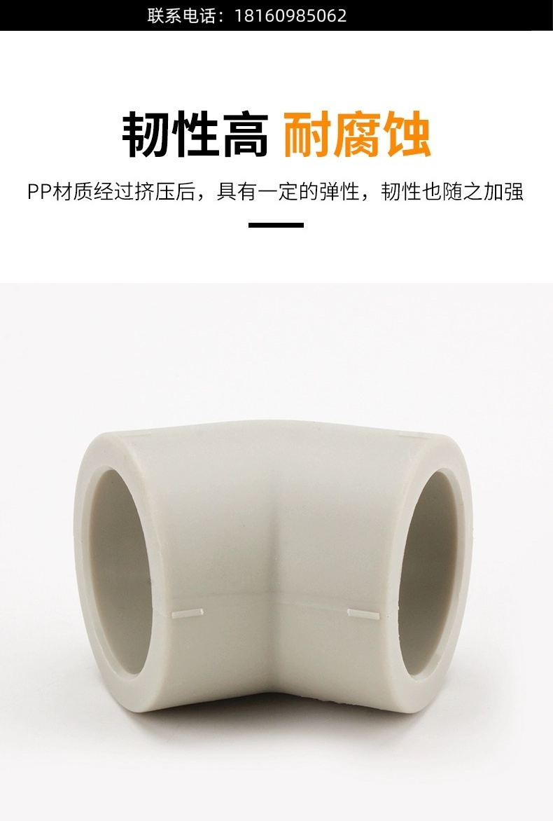 三厘SANKINGPPH45度弯头塑料PP配件管件工业级PPR耐酸碱