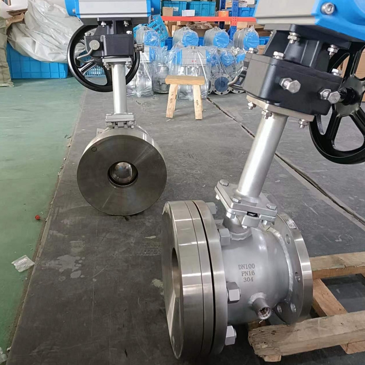 4、球体:球体在90°关闭时,球体与弧形法兰相接,减少积料。