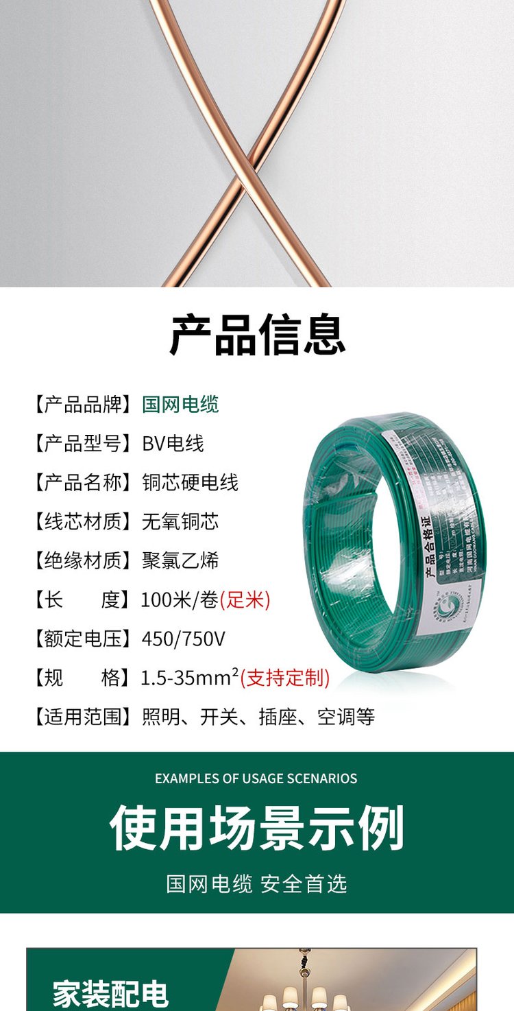 BV电线2.5平方铜芯线家装电缆4/6平方纯铜阻燃10国标单芯硬线 品牌 | 国网牌 | ||