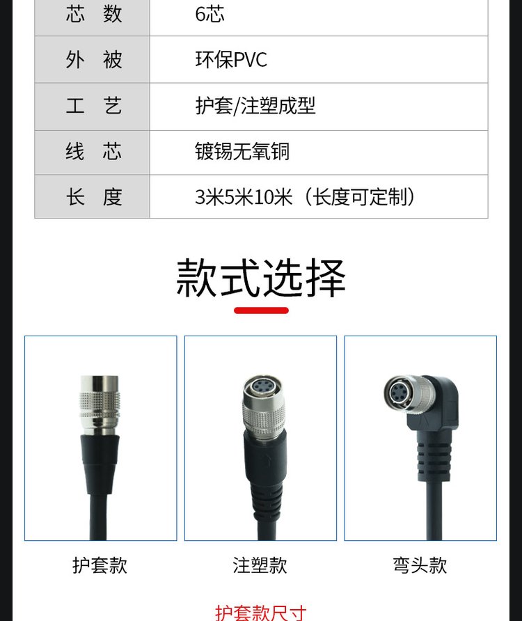 电源触发线工业相机电源线hr10a-7p-6s 6芯3m5m柔性供电I/O线16芯 品牌 | BOHAI | ||