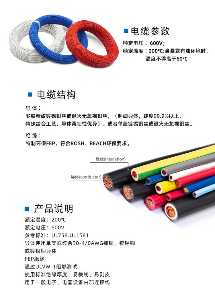 爱德森厂家定制美标133018AWG高温铁氟龙线规格齐全照明线