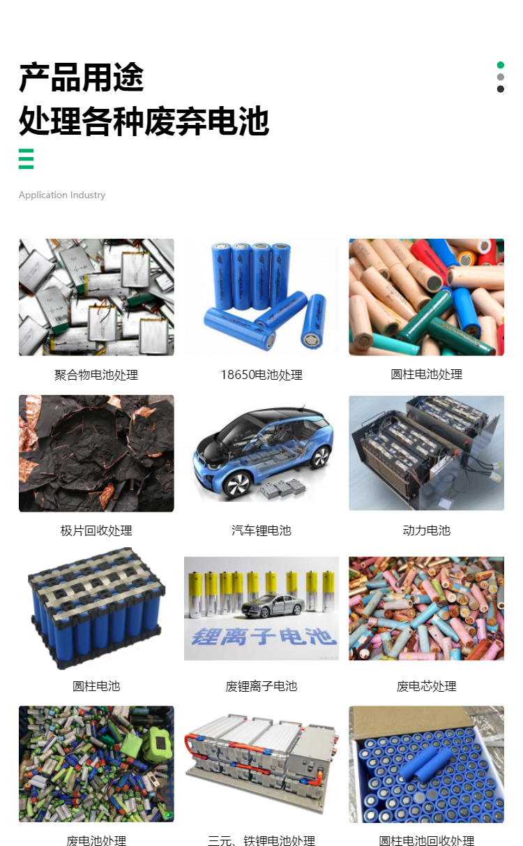 加工范围 | 各种废弃锂电池以及正负极片的回收处理 | ||