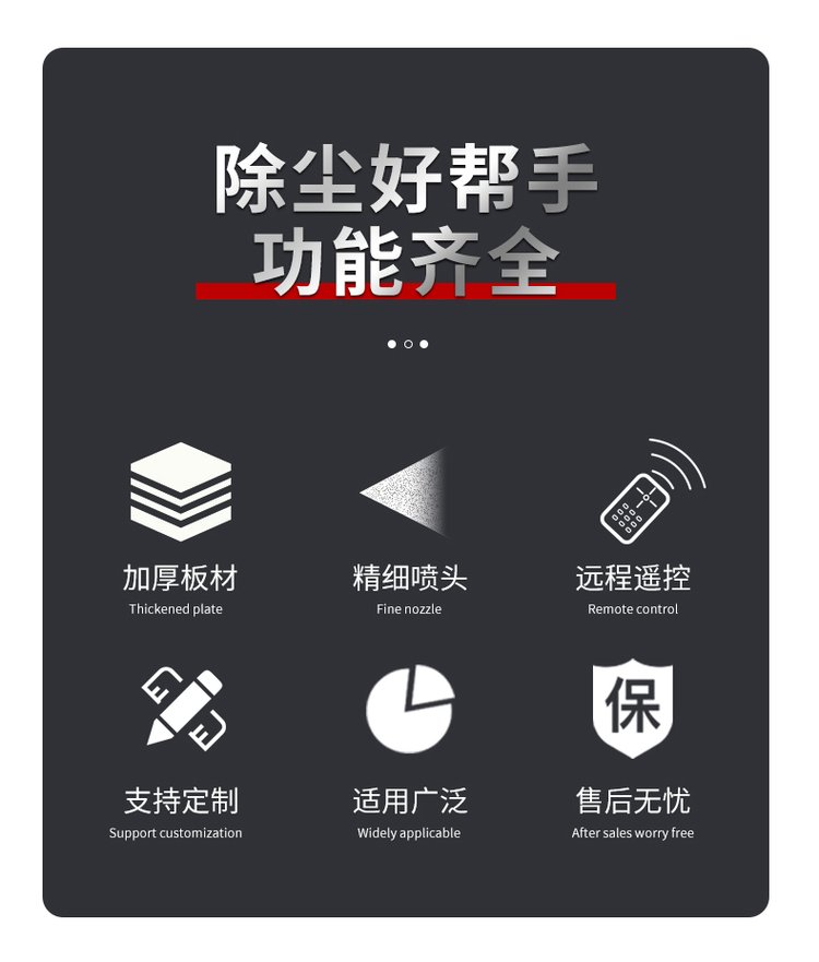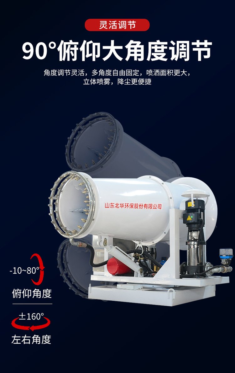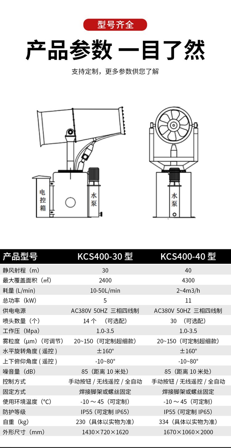 雾粒度(μm)(可调节) | 20~150(可定制超细款)(可定制干雾雾炮)(可定制双流体雾炮) | ||
