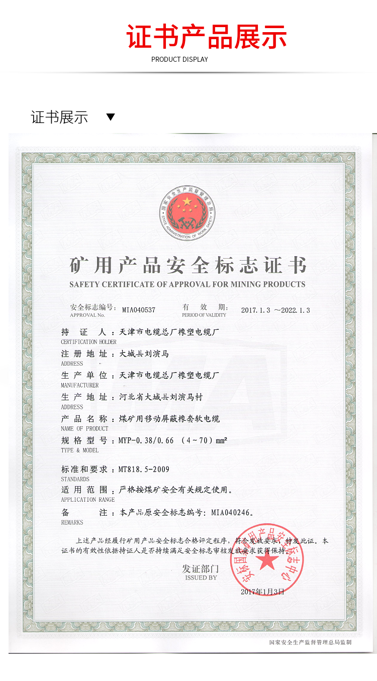 矿用移动橡套软电缆MYP 采煤机移动线 MCP 380/660v 纯国标屏蔽线 用途 | 抗磨抗屏蔽电缆 | ||