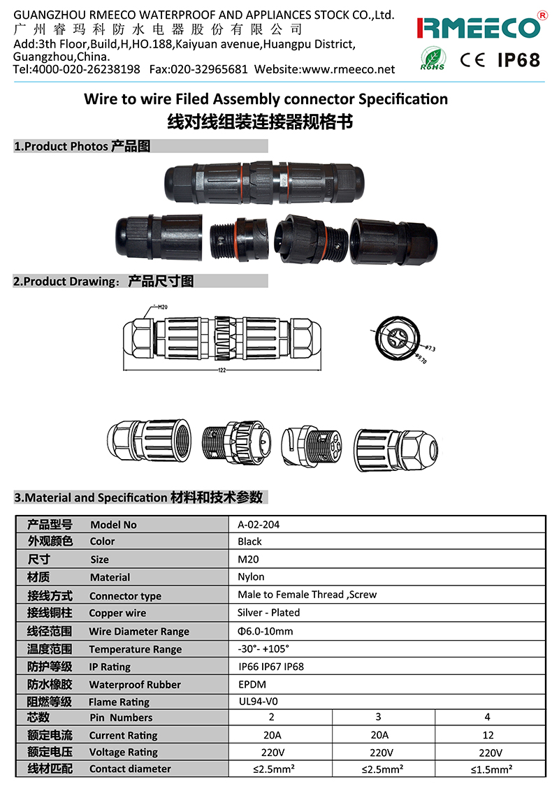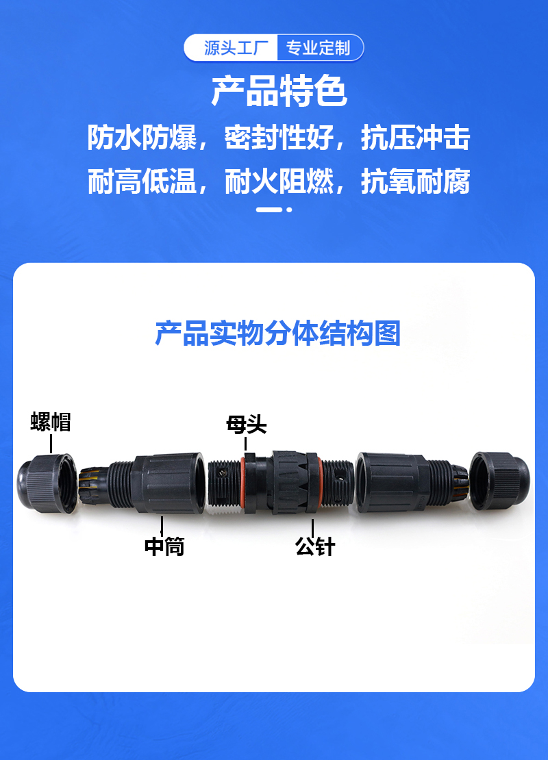 m20尼龙3芯公母转接航空插头快速线对线光电线缆pg直通防水连接器