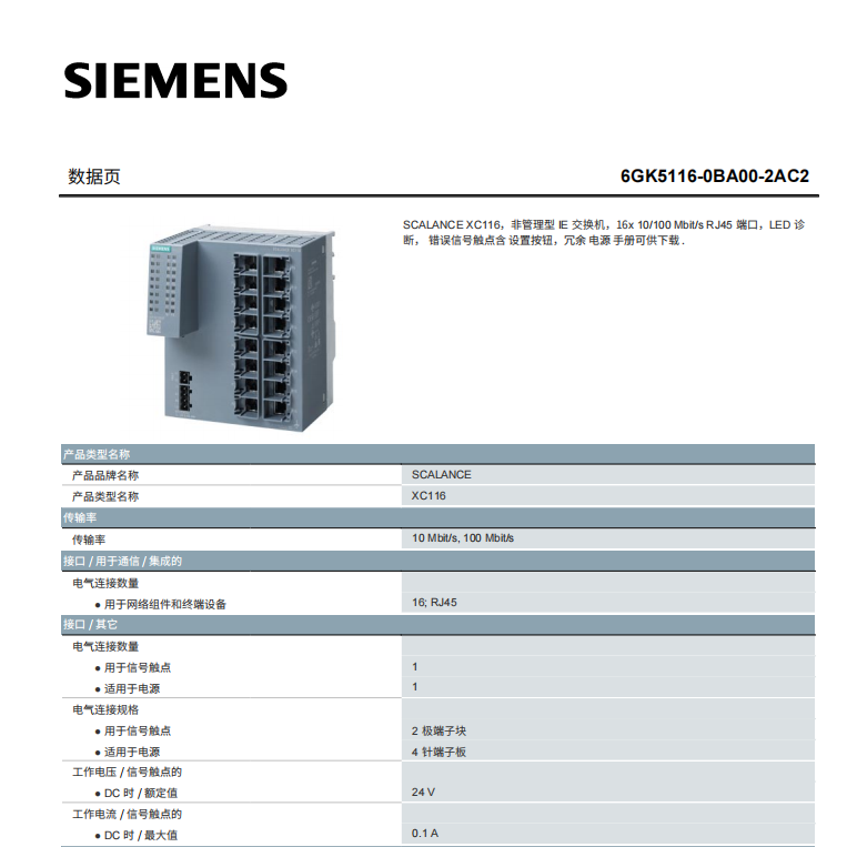 产品说明 | 16x 10/100 Mbit/s RJ45 端口 | ||