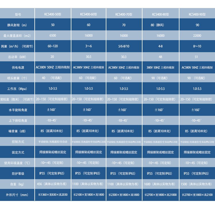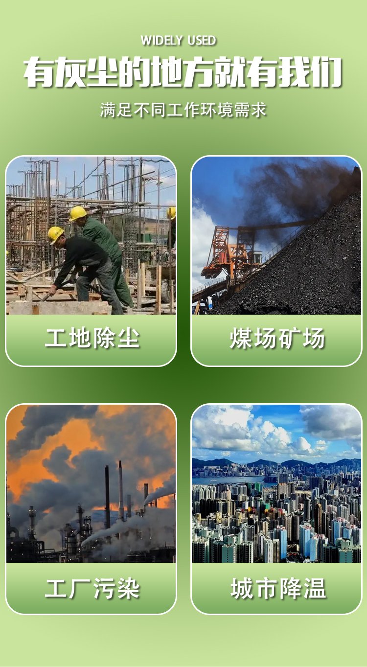 雾粒度(μm)(可调节) | 20~150(可定制超细款)(可定制干雾雾炮)(可定制双流体雾炮) |