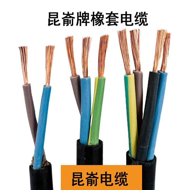 YZ YZW YC YCW橡套电缆橡套电缆是由多股的细铜丝为导体,外包橡胶绝缘和橡胶护套的一种柔软可移动的电缆品种。 一般来讲,包括通用橡套软电缆,电焊机电缆,潜水电机电缆,无线电装置电缆和摄影光源电缆等品种。