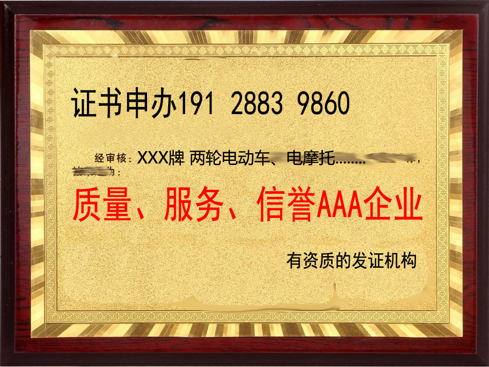 关于电动车权威检测、质量合格产品荣誉证书办理的流程
