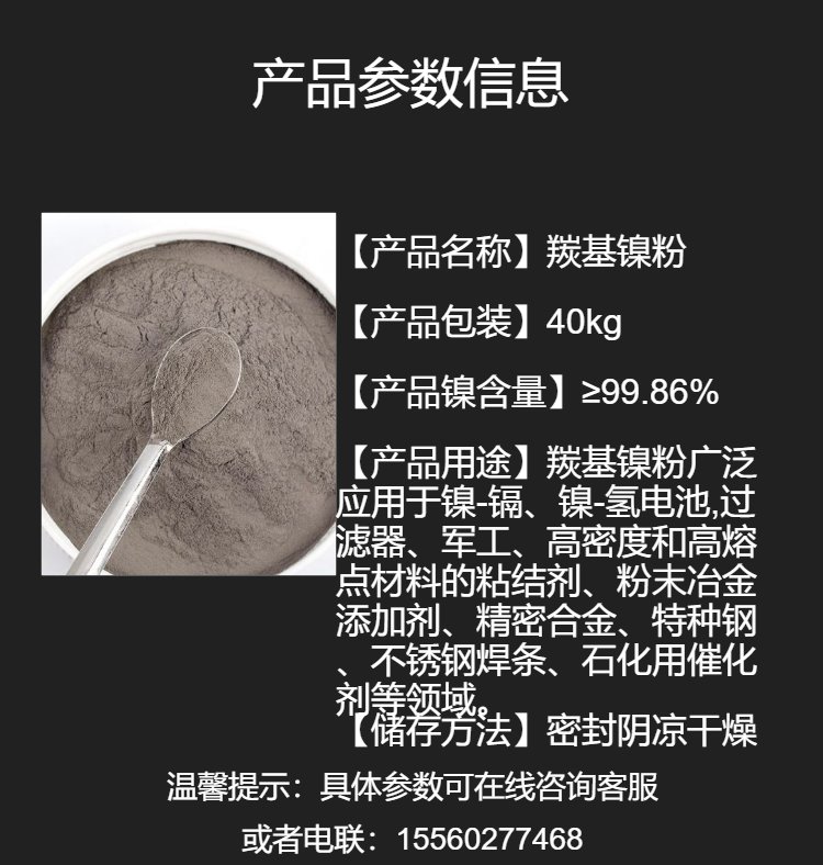 厂家供应5000目高纯度99.86粉状固体羰基镍粉用于精密合金特种钢