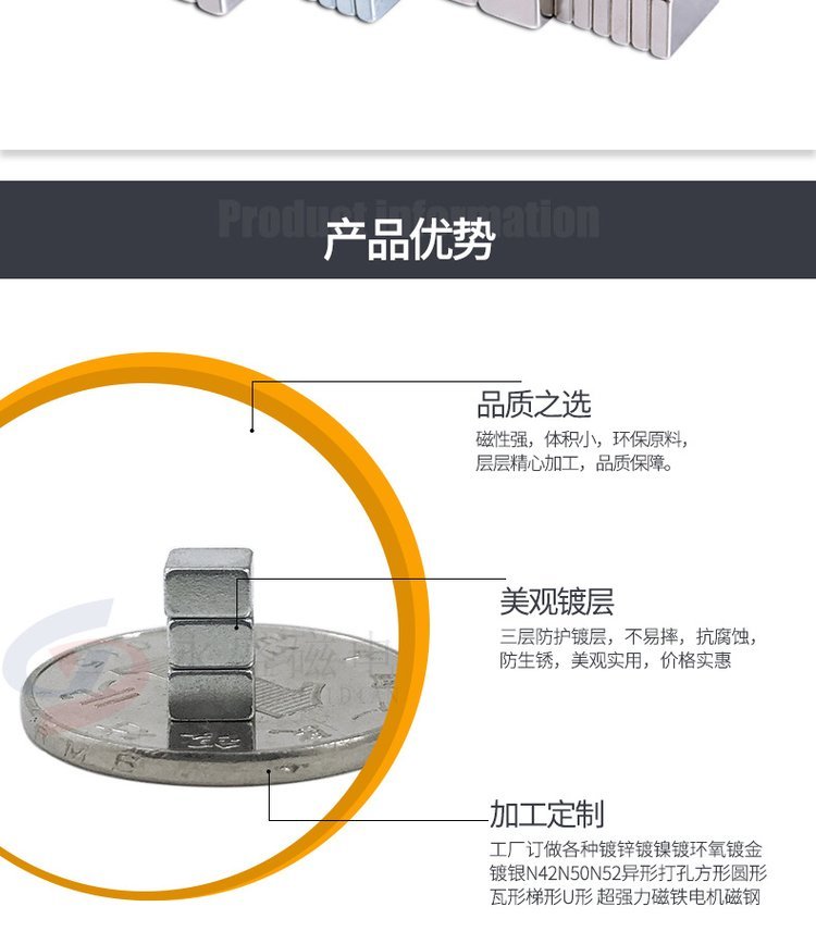 支持定做定制钕铁硼强磁镀锌镀镍方形强力磁铁