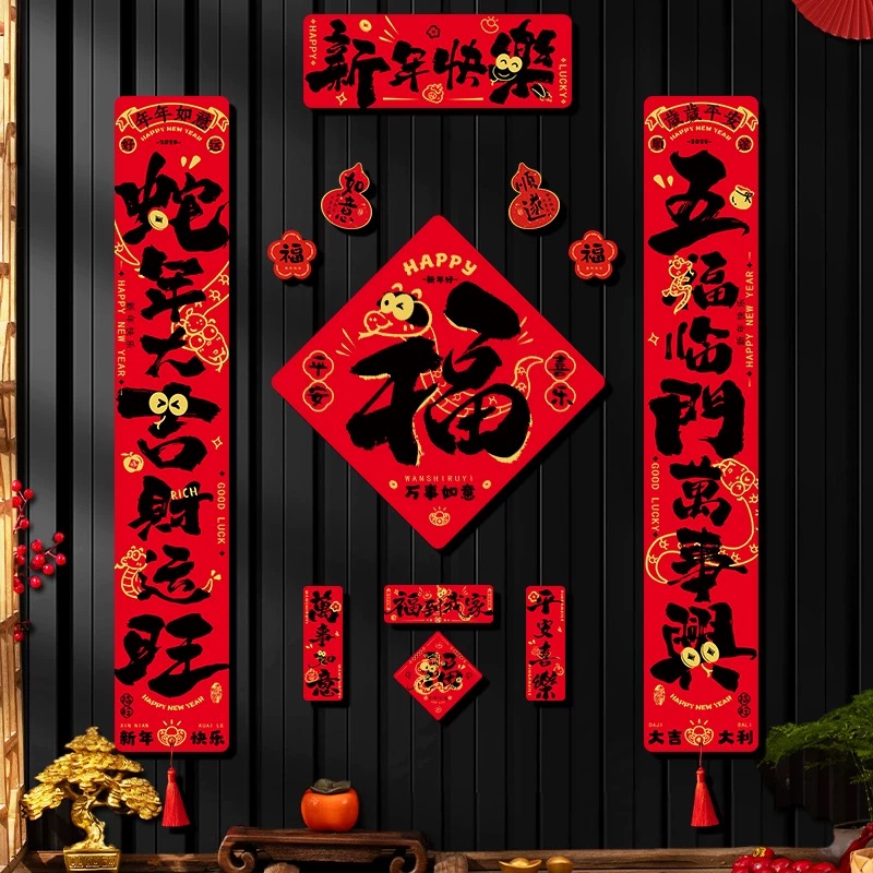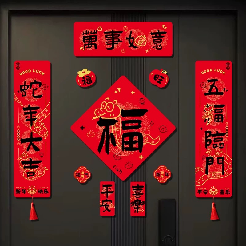 新款磁吸对联2025年蛇年春联福字门贴入户大门过年布置装饰挂件
