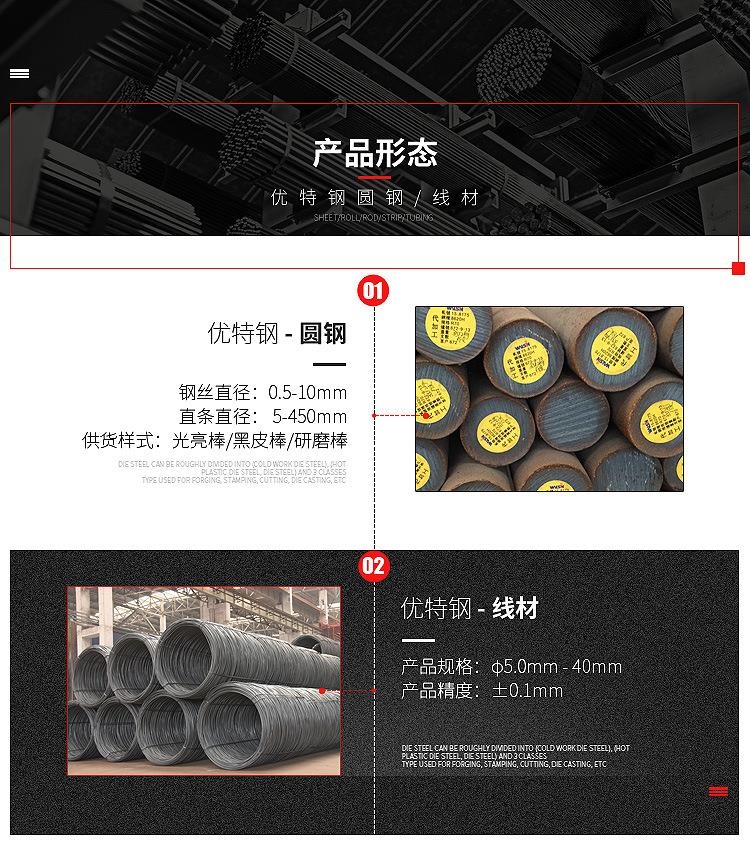 主要经营优特钢(10#、20#、45#、 20Cr、40Cr、可按ISO、ANSI、JIS、DIN、GB等.圆钢材质有:40CrNiMoA、20CrNiMoA、8620H、20CrNi2Mo 、20CrMnMo 、40CrMnMo 、30crmo、Q355、15CrMo 、20CrMo 、35CrMo 、42CrMo 、4140、4130、SAE8620、45CrNiMoVA、16MnCr5(15CrMn)、38CrMoAlA、20MnCr5(20CrMn) 、18Cr2Ni4WA 、12CrNi3、20Cr2Ni4A 、35CrMnSiA、30CrMnSiA 、18CrNi3Mo、25Cr2MoV、20CrMo、22CrMoH、20CrMnMo、20-30CrMnTi、25CrNiMoV、20CrNiMo、G20CrNiMo、G20CrNi2Mo、30Cr2Ni2Mo、17Cr2Ni2Mo、17CrNiMo6、18CrNiMo7、34CrNiMo6、30CrNiMo8、40CrNiMoA、45CrNiMoVA、40-45CrNi、20Ni4Mo、30CrMnSiA、35CrMnSiA、20-30CrMnSiNi2A、38CrSi、34CrNi1Mo、12CrNi3A、20CrNi3A、30CrNi3A、34-37CrNi3A、34-37CrNi3MoA、PCrNiMoA、PCrNi3MoA、12Cr2Ni4A、20Cr2Ni4A、18-25Cr2Ni4W、25Cr2MoV、25Cr2Mo1V、12CrMo、12Cr1MoV、12Cr1Mo1V、15CrMo、12Cr2Mo1、10CrMo910、12Cr2MoWVTiB、35CrMoV、45Cr2MoV、P11、18CrNi3MoA、20CrNi3MoA、25CrNi3MoA、FF710、22SiMnCrNi2MoVA、5CrW2Si.