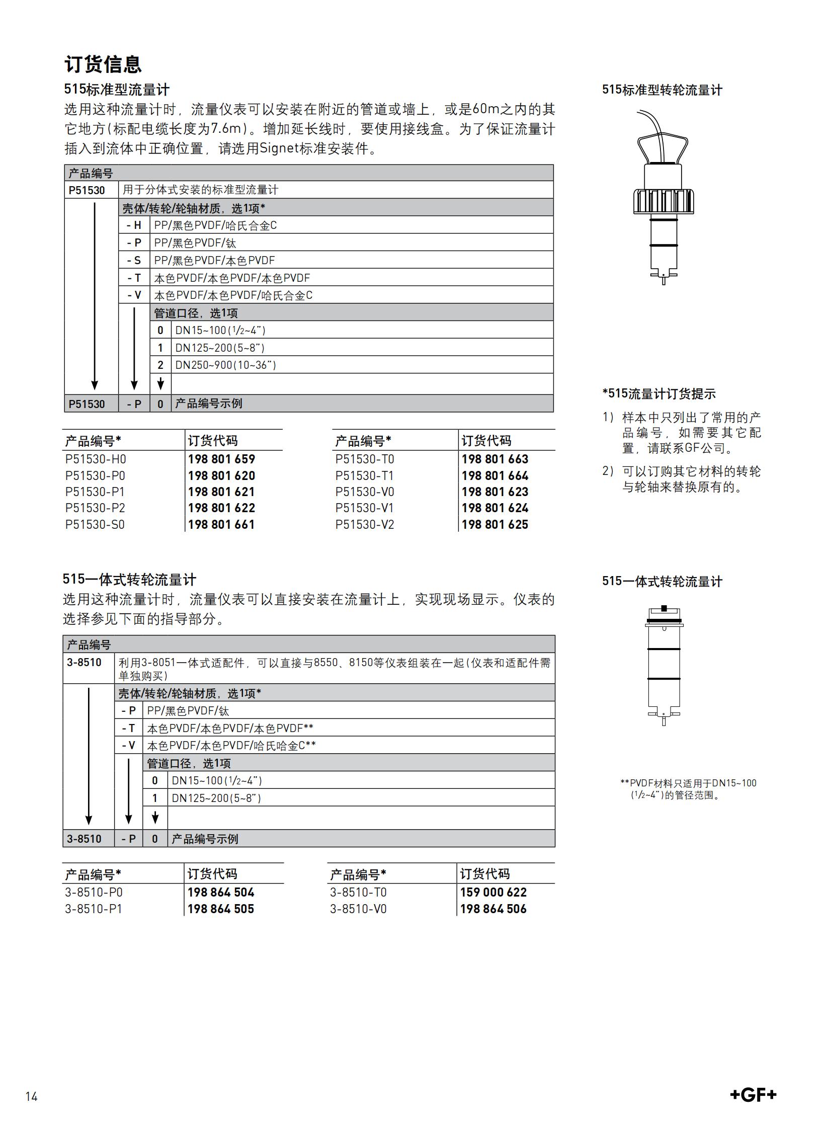 GF转轮流量计P51530-P0\/P51530-P1流量传感器探头