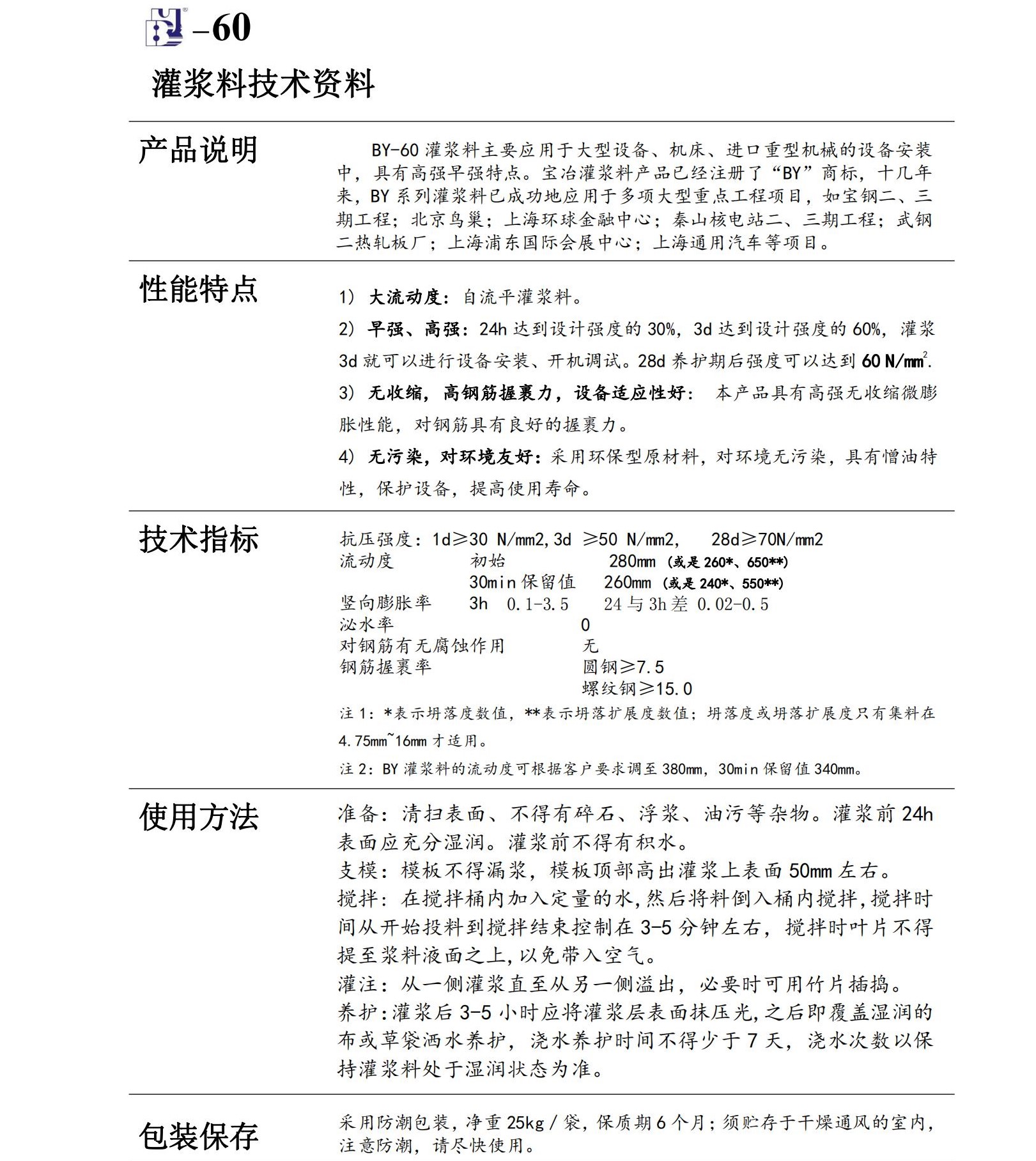 BY灌浆料BY-40/BY-60/BY-80/BY-90高强无收缩/设备基础加固料 抗压强度 | 60 | ||