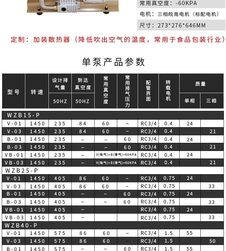 最大出口压力数值 | -60kPa | ||