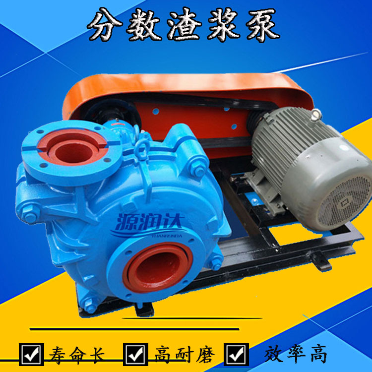 分数渣浆泵介绍分数渣浆泵为悬臂、卧式离心渣浆泵。渣浆泵使用:在小流量低扬程区域内,可以输送强磨蚀渣浆;在高扬程大流量区域内输送轻磨蚀渣浆。渣浆泵密封形式:AH渣浆泵、杂质泵的轴封可采用填料密封、副叶轮密封、填料加副叶轮密封、机械密封等型式。 在海水选砂领域,渣浆泵应用也开始逐渐被客户认可。但是在海水里选砂,河道里挖沙,渣浆泵更容易被认为,称为砂泵,安国分数渣浆泵,挖泥泵。尽管叫法不一,但是从结构特点和泵的性能原理上来讲,都可以通称为渣浆泵。因此在这海水选砂中我们经常称为砂泵,在河道清淤里面习惯上叫挖泥泵。