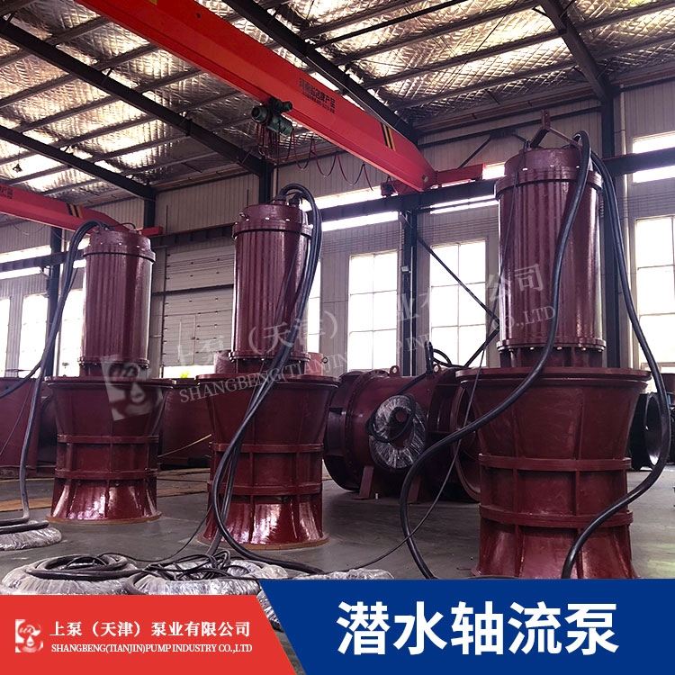 潜水轴流泵:驱动水泵的电动机是干式全封闭潜水三相异步电动机,可以长期浸入水中运行,具有传统机组一系列无可比拟的优点。