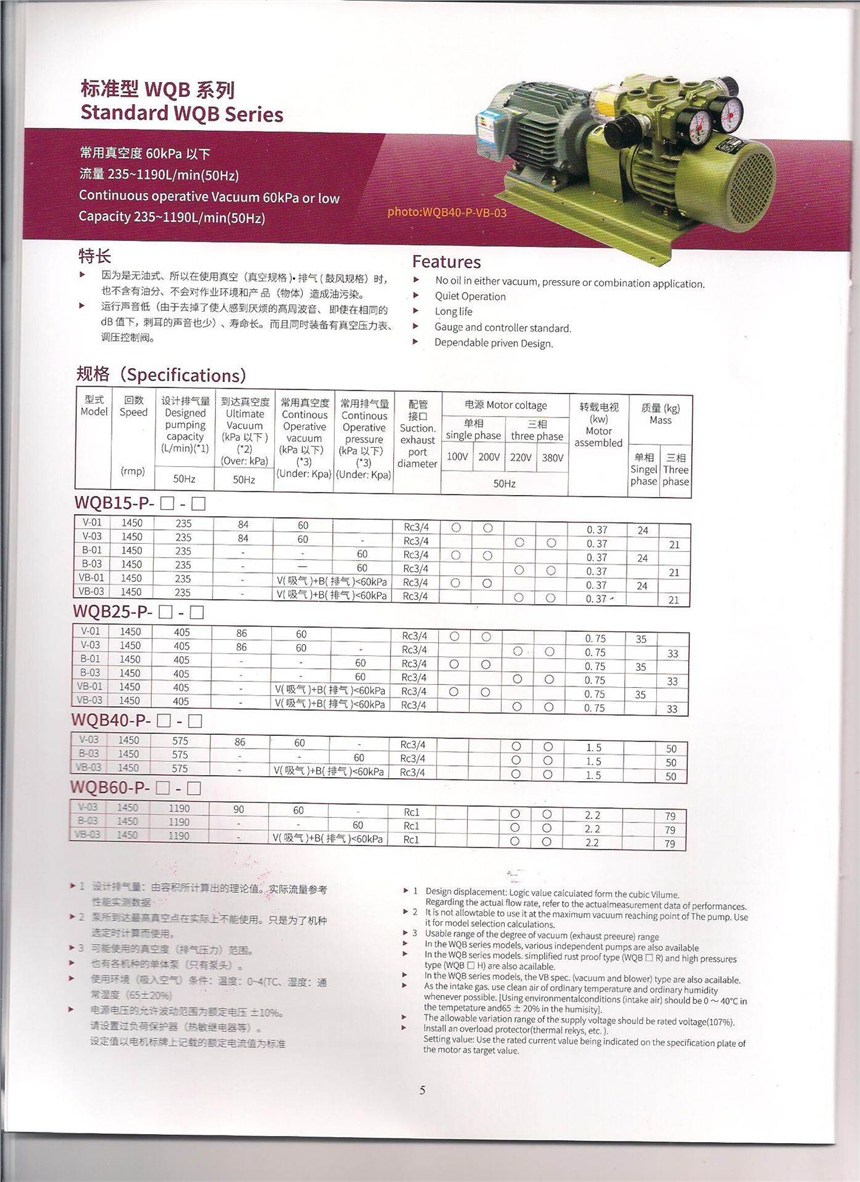 上海宇旭YUXU电动真空泵WQB30-P-VBVB-03自动包装线上拉列开袋、装料