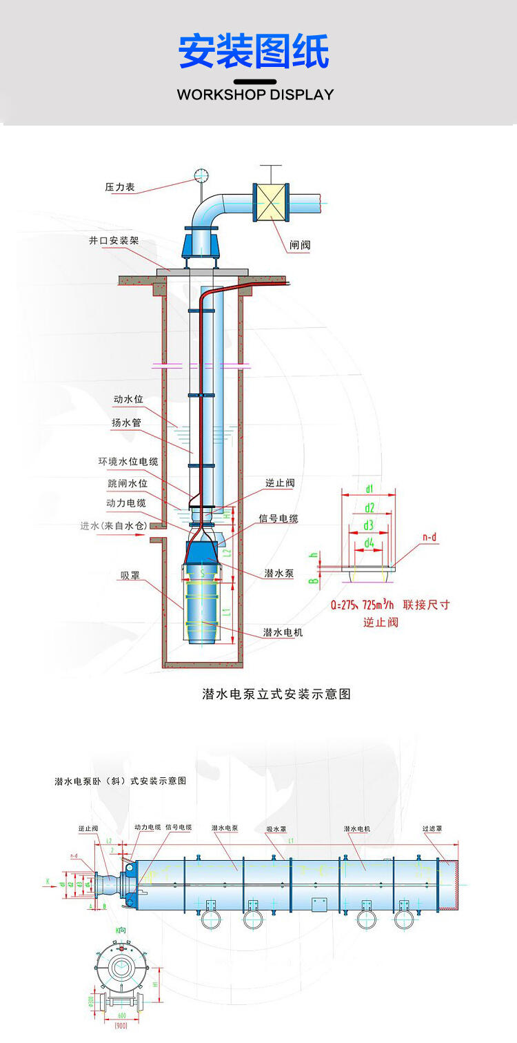 深井抽水泵20方流量200米扬程大口径规格参数