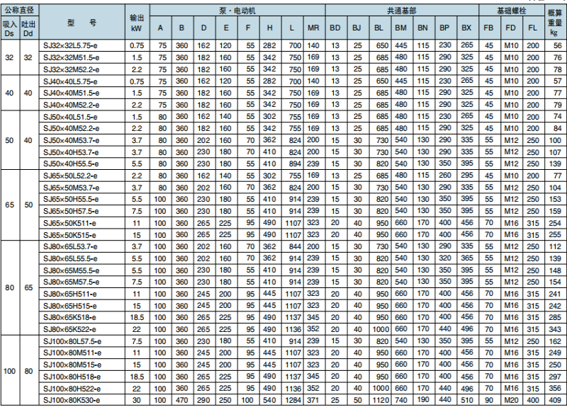 SJ80×65K522-e SJ100×80L57.5-e SJ100×80M511-e SJ100×80M515-e SJ100×80H518-e SJ100×80H522-e