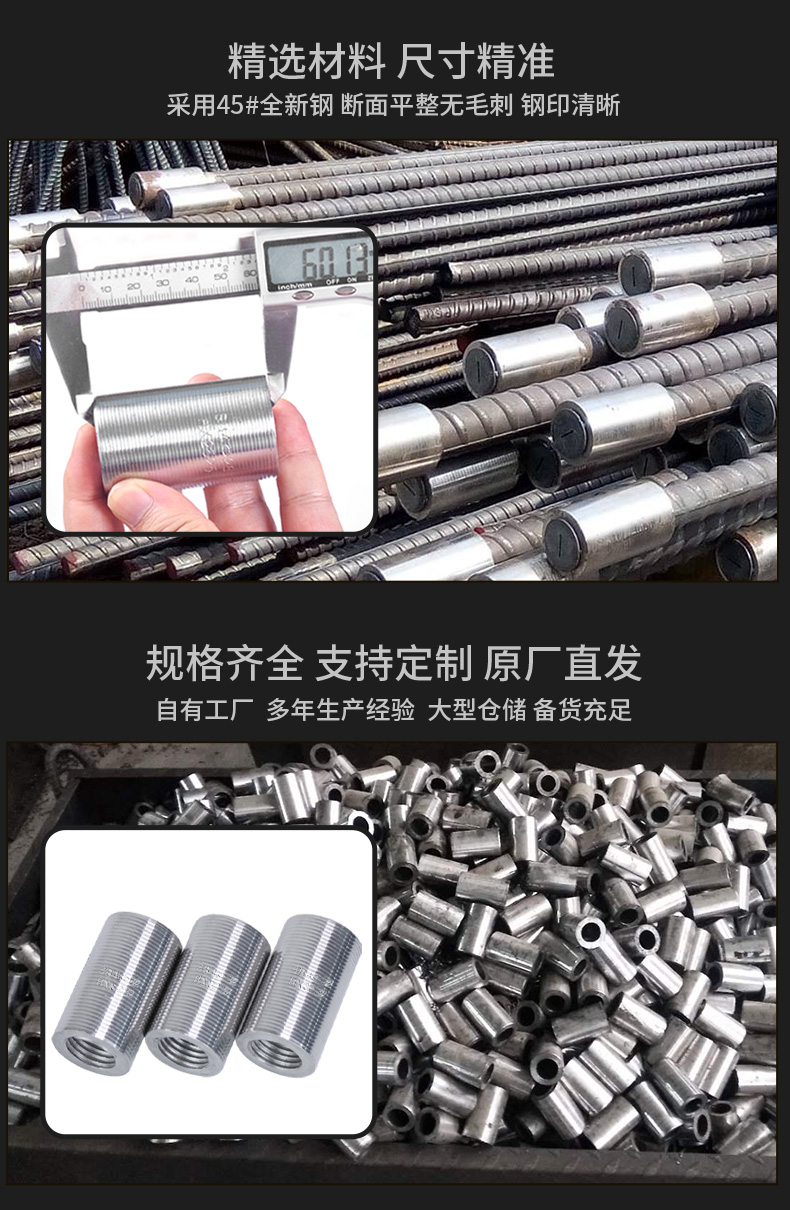 现货钢筋直螺纹套筒22钢筋连接接头耐磨耐腐蚀持久耐用