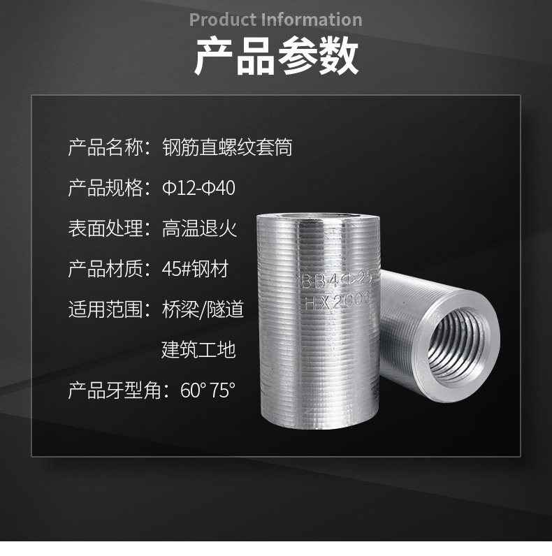 m16国标钢筋套筒直螺纹钢筋连接套管变径钢筋接驳器现货速发
