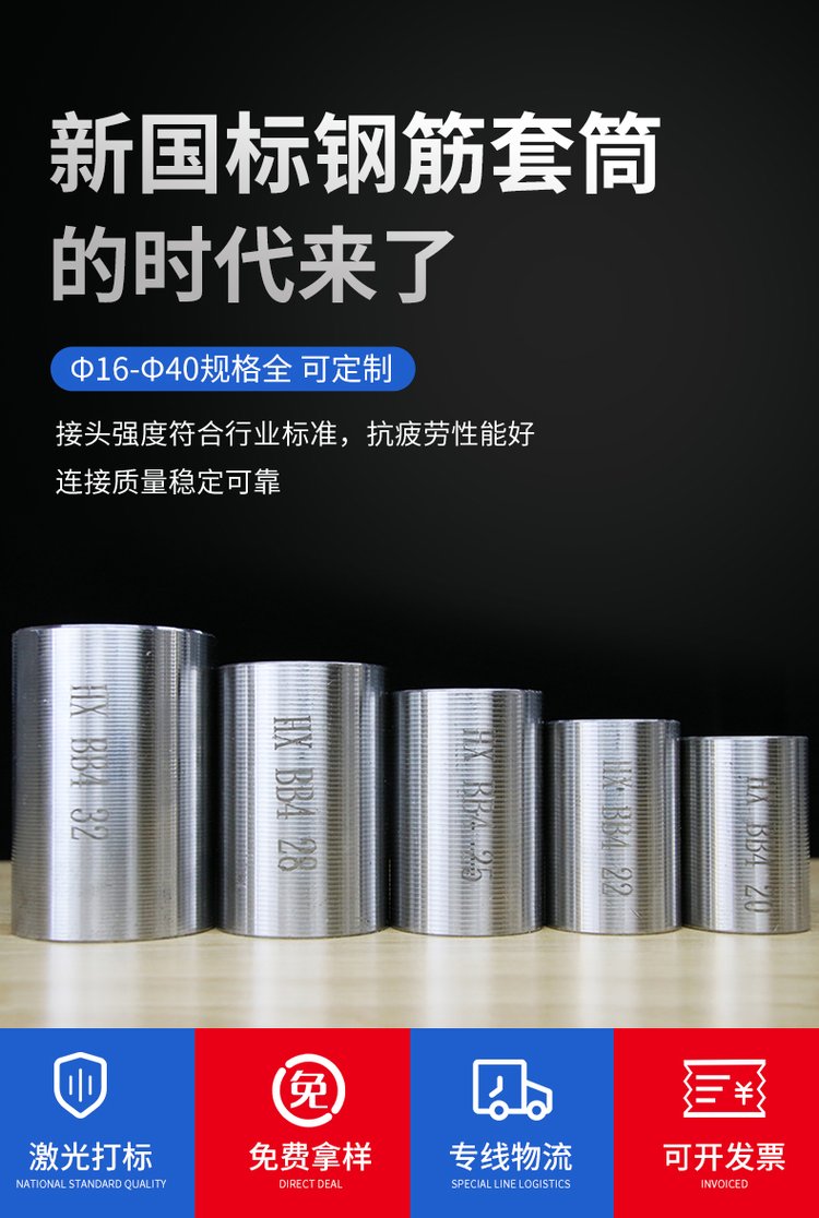 25国标直螺纹钢筋连接套筒四级钢正反丝钢筋变径接头接驳器